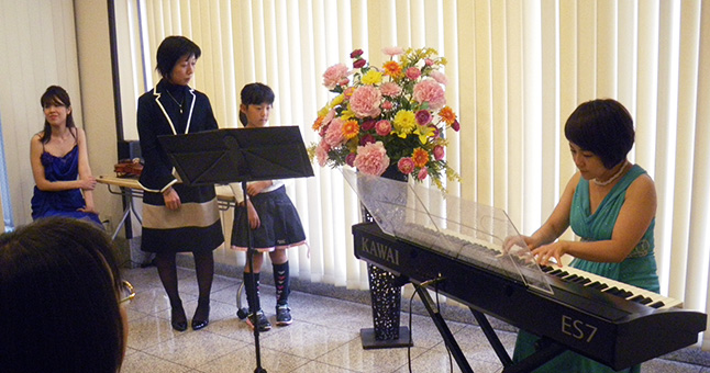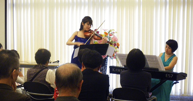 電子ピアノということで、普段なじみのない楽器なのでどうなるのか・・・不安はありましたが、ヴァイオリンソナタやショパンのワルツ(ソロ)も、無事弾ききることが出来てホッとしています。お客様を身近に感じながら演奏が出来、とても楽しかったですし、お客様とのコミュニケーションも良い思い出となりました。お世話になり、ありがとうございました。