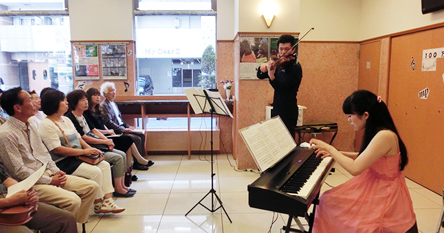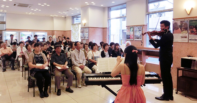 いつも利用させて頂いている東横イン様のロビーで演奏させてもらえてとても嬉しかったです。お客様が温かくて、演奏会も懇親会も楽しませて頂きました。