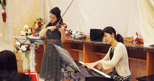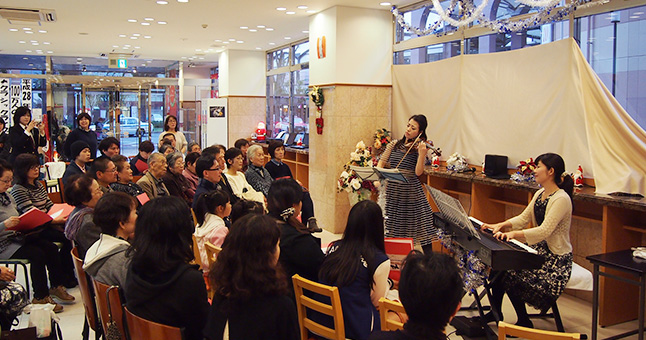 ホテルのスタッフの皆さんがクリスマスの飾り付けをして下さり、とても綺麗で可愛らしく演奏にも気持ちが入りました。