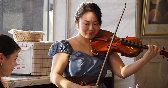 2002年フランス・マレーシア親善演奏会出演。第17回大倉山水曜コンサート新人演奏会出演。ヴァイオリンを大谷康子、中島郁子、植田しづかの各氏に、室内楽を浦川宜也、苅田雅治の各氏に師事。近年は室内楽、レコーディング、邦楽器や日舞とのコラボレーション演奏など活動の幅を広げつつ、後進の指導にもあたる。関東を中心に弦楽四重奏『アントニオ・クヮルテット』の第一ヴァイオリン奏者としてこれまでに200回以上の公演を行う。又、東日本大震災被災地にて子供向けのコンサート企画・演奏活動なども行う。
