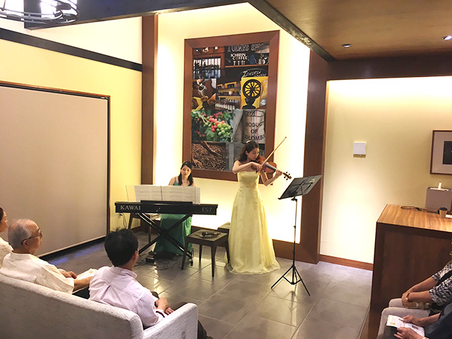 天井の高い素敵な空間でのコンサートでした。一凛珈琲北本店の6回目のコンサートで、毎回楽しみにして下さるお客さまが多いようで温かな雰囲気の中演奏することができました。