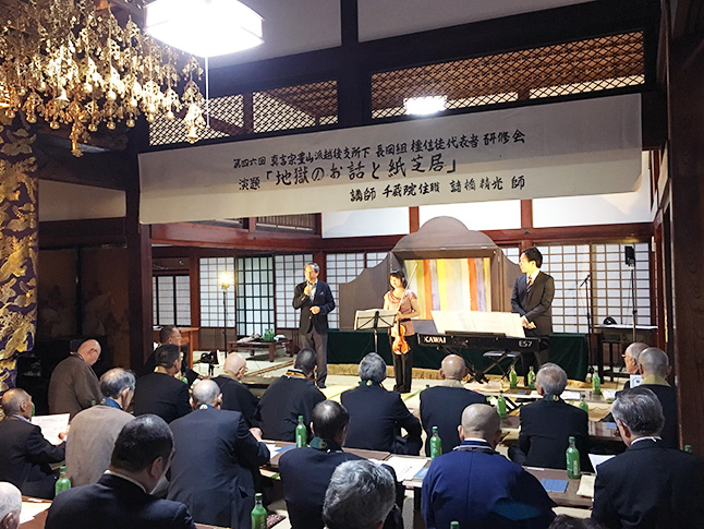 檀信徒研修会の中でコンサートをさせて頂く特別な会の中で100万人のクラシックライブに出演させて頂いたことに大変嬉しく思います。コンサートの趣旨は演奏家2人で話すことによって、説得力が増すことに気づかされました。