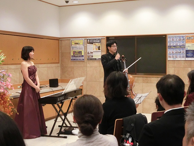 足元の悪い中、沢山のお客様にご来場頂け嬉しく思いました。 サロンともコンサートホールとも違う、ホテルのロビーという空間でお客様と音楽が共有出来たことはとても新鮮な気持ちになりました。また、終演後の懇親会でお客様からの声も聞けた事は今後の演奏へ繋げていきたいと思います。
