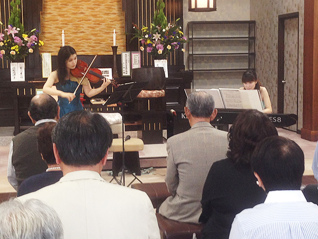 今回は、初めての法正寺本堂でのクラシックライブということで、演奏家としてもめったにない機会ですし、演奏するときはいつも以上に、神聖な気持ちで集中することができたように思います。聴いてくださったかたとも沢山コミュニケーションが取れて楽しいひと時でした。あの曲が聴きたかった、もっとこうしてほしいなどの熱い願望もあり、なごやかな中にも熱意を感じ、嬉しくなりました。お世話になった方々、やさしくお声がけしてくださったお客様、どうもありがとうございました。