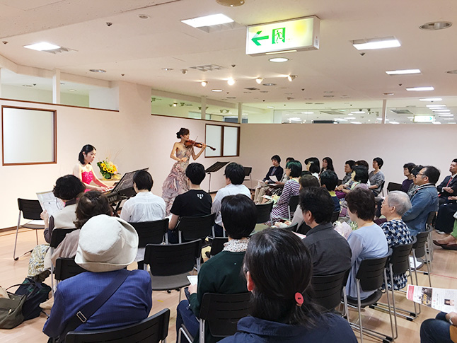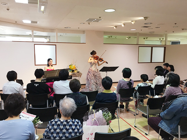 初めての会場での演奏で、お客様の反応が少し不安でしたが、温かい雰囲気の中で演奏することができました。高齢者施設の演奏も、何曲か童謡や日本の曲を入れたので、皆さんで童謡を歌うことができました。お客さんと距離が縮まったように感じました。またこのような形での演奏がしたいです。