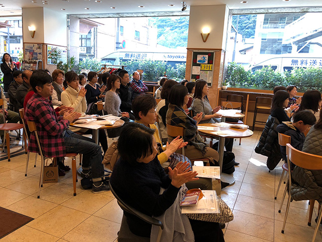 朝から快晴の徳島市内。中でもとりわけ美しい眉山の麓で行われたコンサートは、お客様との距離も近く、曲の合間の会話にもとてもよく聞き入って下さり、和やかな雰囲気で進めさせて頂きました。終演後の歓談には美味しい軽食やドリンクも豊富にご用意下さり、思わずお客様と一緒に盛り上がって時間を忘れる程でした。目黒支配人様、事務局の加藤さんはじめ関係者の皆様には大変お世話になりました。ありがとうございました。
