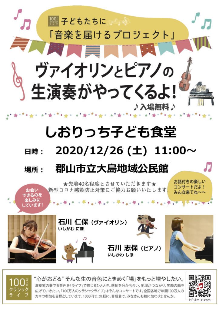 | 演奏 | 石川 仁保(ヴァイオリン)・石川 志保(ピアノ) |