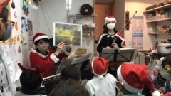 「自粛の時間があまりに多すぎて子供たちはストレスが溜まっているようです。リフレッシュが出来て楽しい時間を過ごせるよう…」とのことで、広い公民館に会場を移し、子どもたちと年末のひとときを音楽で豊かに過ごすこととなりました。