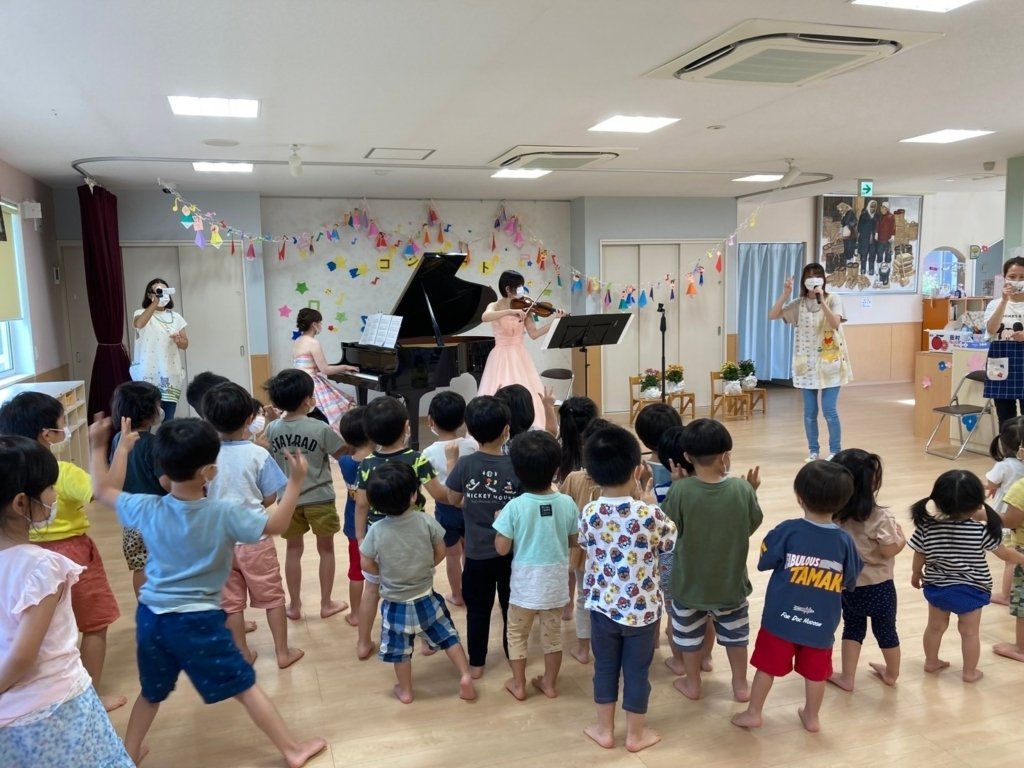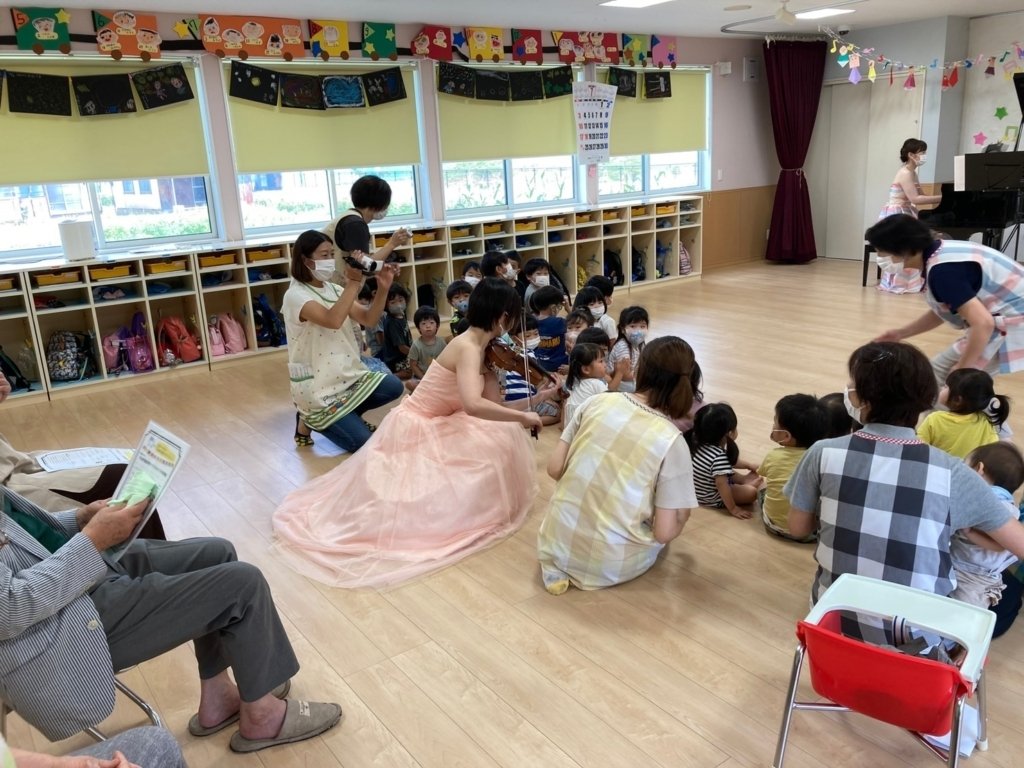 ・いつもの保育室がコンサート会場になり、子どもたちも楽しそうだった。