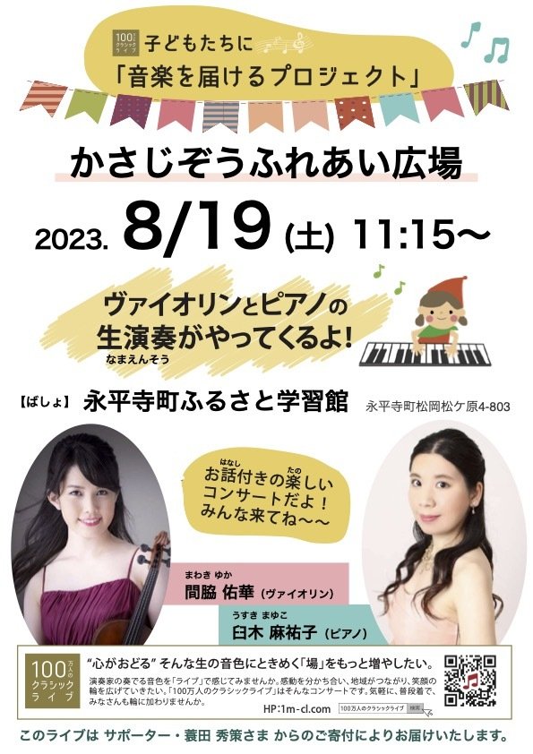 | 演奏 | 間脇 佑華(ヴァイオリン)・臼木 麻祐子(ピアノ) |