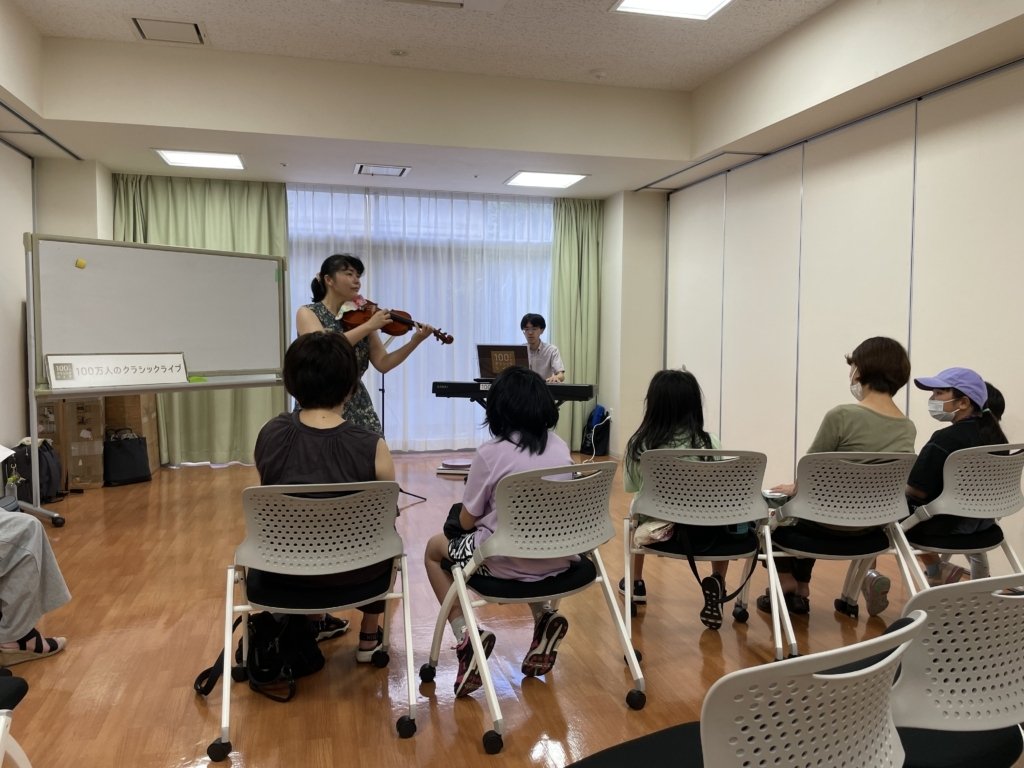 とても楽しい時間をありがとうございました。普段みられない子供たちの真剣な顔や、積極的に参加する姿がみられ恥ずかしがって前へ出られなかったけどそこから『次はする!!』と決心する気持ちの育みも見ることができました。曲の解説がわかりやすく、ただ聞いているだけでは見えてこなかった曲の背景や景色が目に浮かびクラシックが身近に感じました。参加できた子や当日参加出来なかった子たちから「来年も聴きたい」という声がたくさん聞こえてます!楽しみにまってます!!