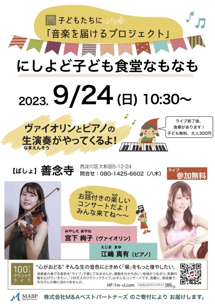 100万人のクラシックライブさんとのご縁は大阪市社会福祉協議会様よりご紹介いただき2020年10月22日なもなもオープニングセレモニーにお越しくださいました。鳥肌がたつほど感動を覚える素敵な演奏を聴かせていただきました。