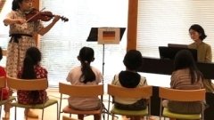 普段クラシックコンサートなどに馴染みのない子ども達ですが、とても静かに聴いていました。江嶋さんがカスタネットや鈴などで一緒に参加しませんか?と子ども達に尋ねるとたくさんの子ども達が自主的に手をあげてくれました。バイオリンの宮下さんとピアノの江嶋さんの演奏に合わせてカスタネットや鈴の音色がとてもよく合って参加した子ども達も楽しそうでした。