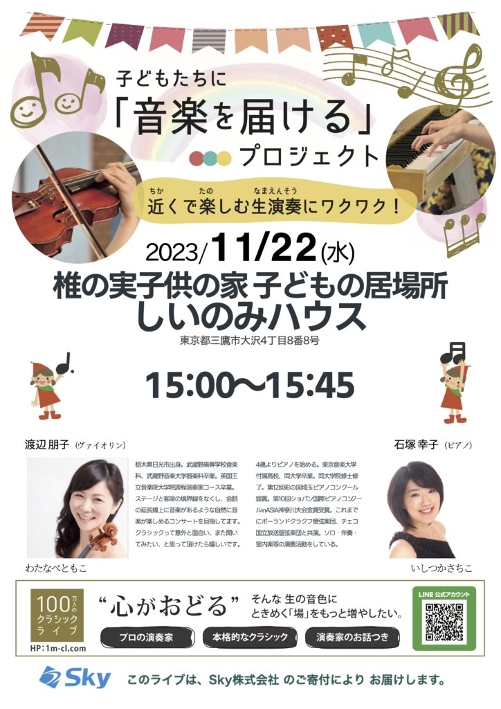 | 演奏 | 渡辺 朋子(ヴァイオリン)・石塚 幸子(ピアノ) |