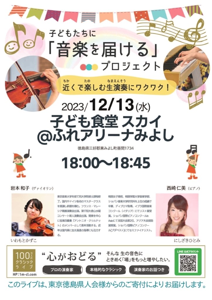 地元の保護者の方が歌でコラボし、ピアノ・バイオリンの奏でる心地良い音楽に参加者全員聞きほれていました。今回パントリーも一緒に開催し、素敵な音楽の音色に心地よい気持ちになり少し早いクリスマスとなりましたがどの子も素敵な笑顔であふれていました。これからも食と音楽を通して子どもたちの情緒面での安定や優しい気持ちを引き出していける地域に根付いたそんな子供食堂であり続けたいと思います。 ありがとうございました。